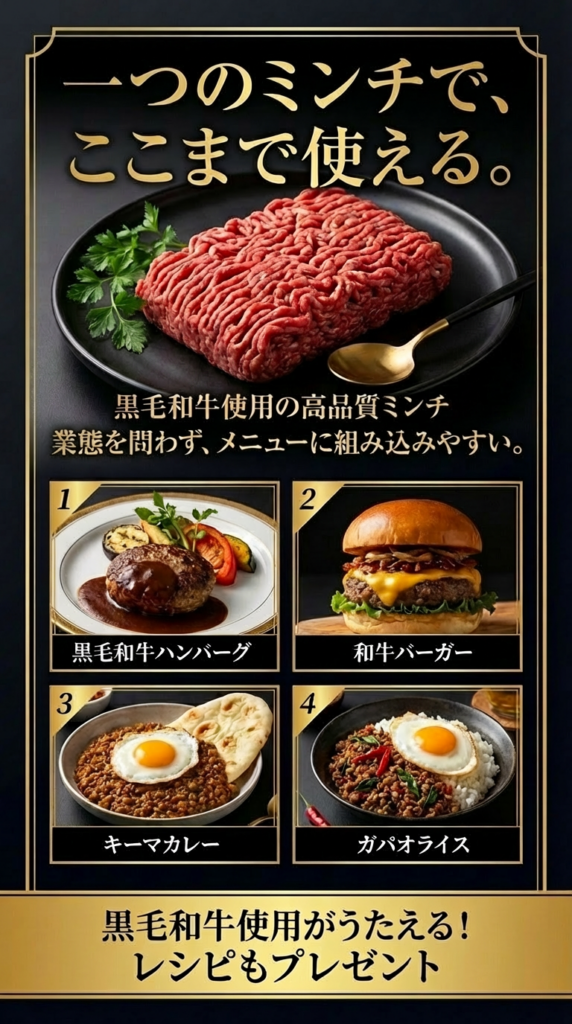 → 黒毛和牛使用、プロが認める本格的な旨味